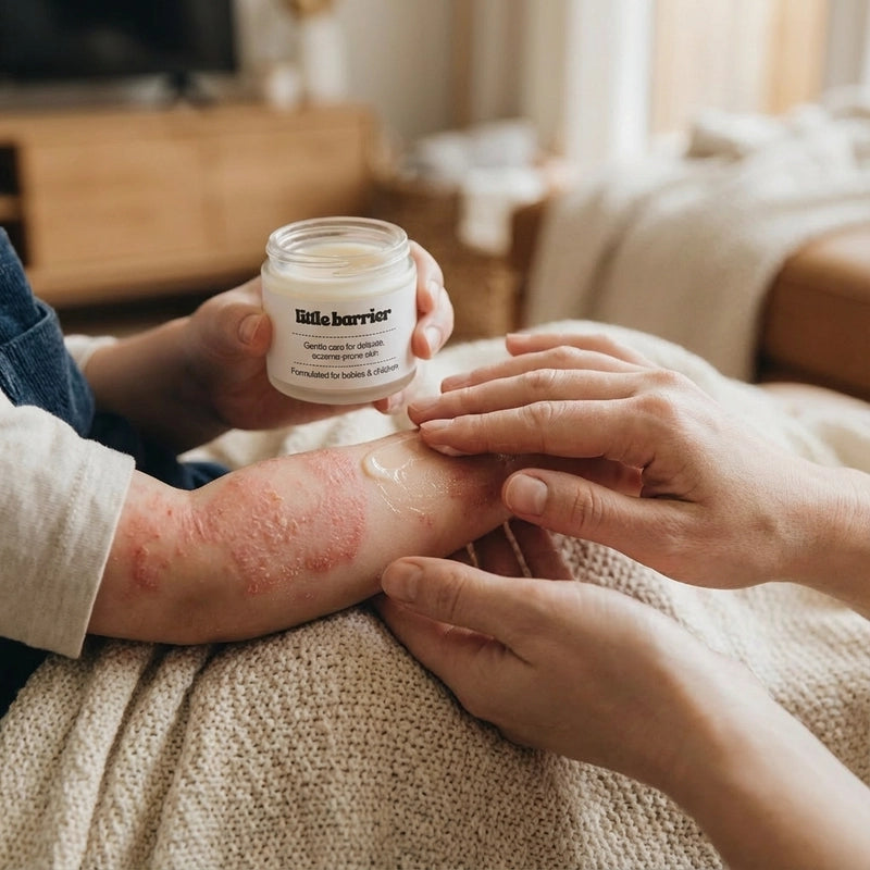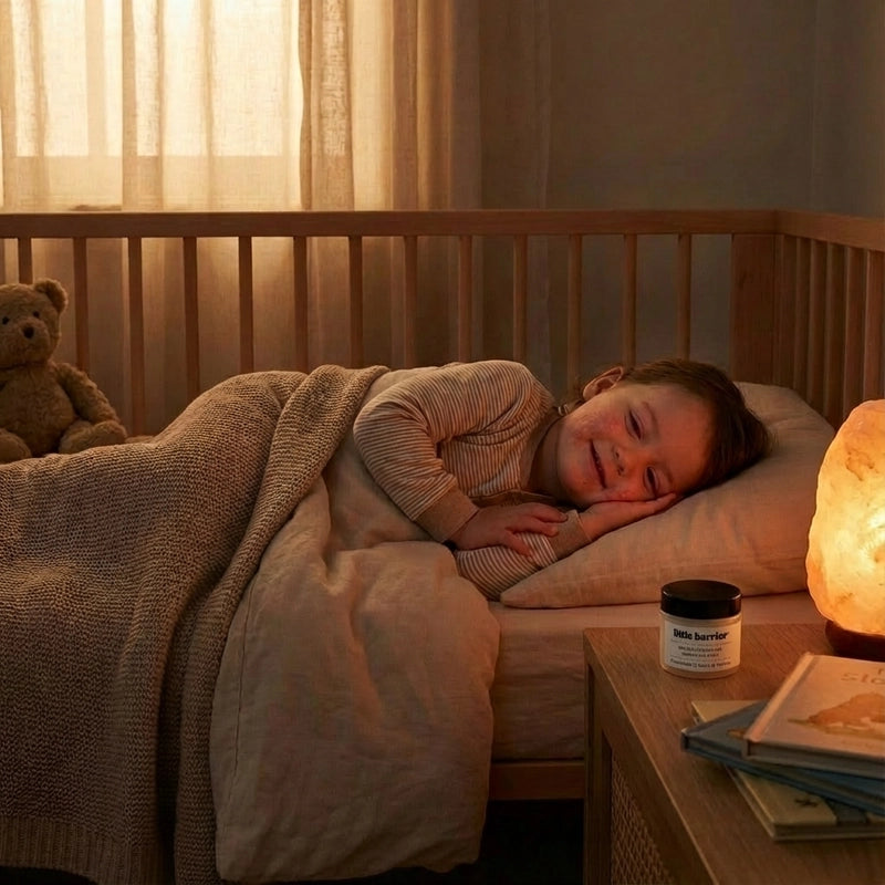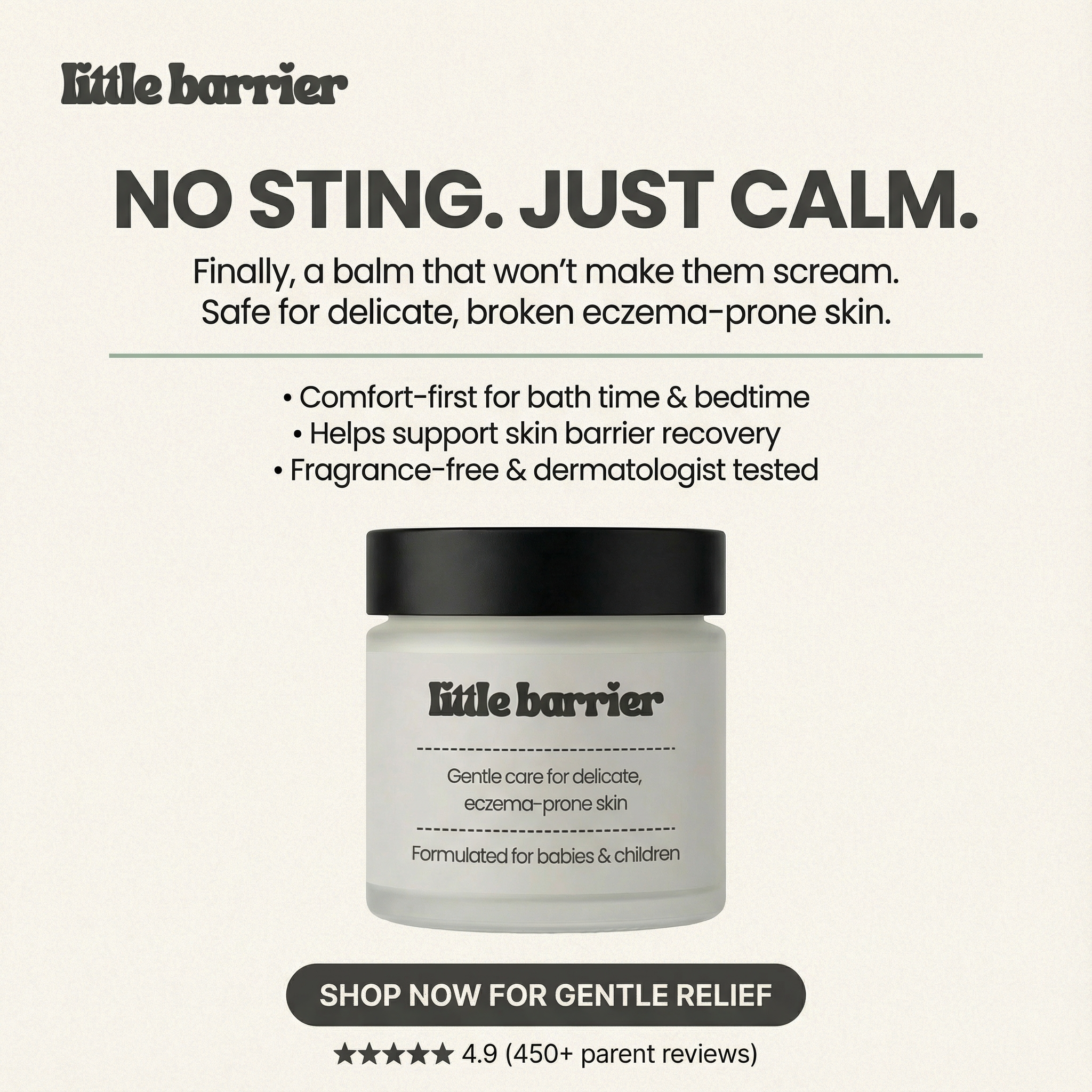 Nights are when sensitive skin can feel the most uncomfortable. Little Barrier keeps it simple: a 5‑ingredient balm with fully listed INCI, designed to feel gentle (no sting) and support your child’s bedtime routine.